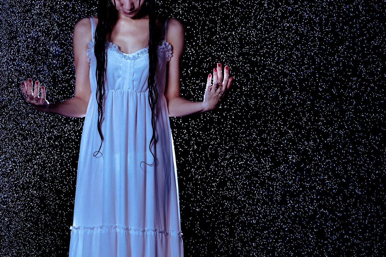 そのまま何分経っただろうか、いよいよ恐怖心が心に影を落とし始めた時、向かいの壁の上の方から女が滲み出てきた